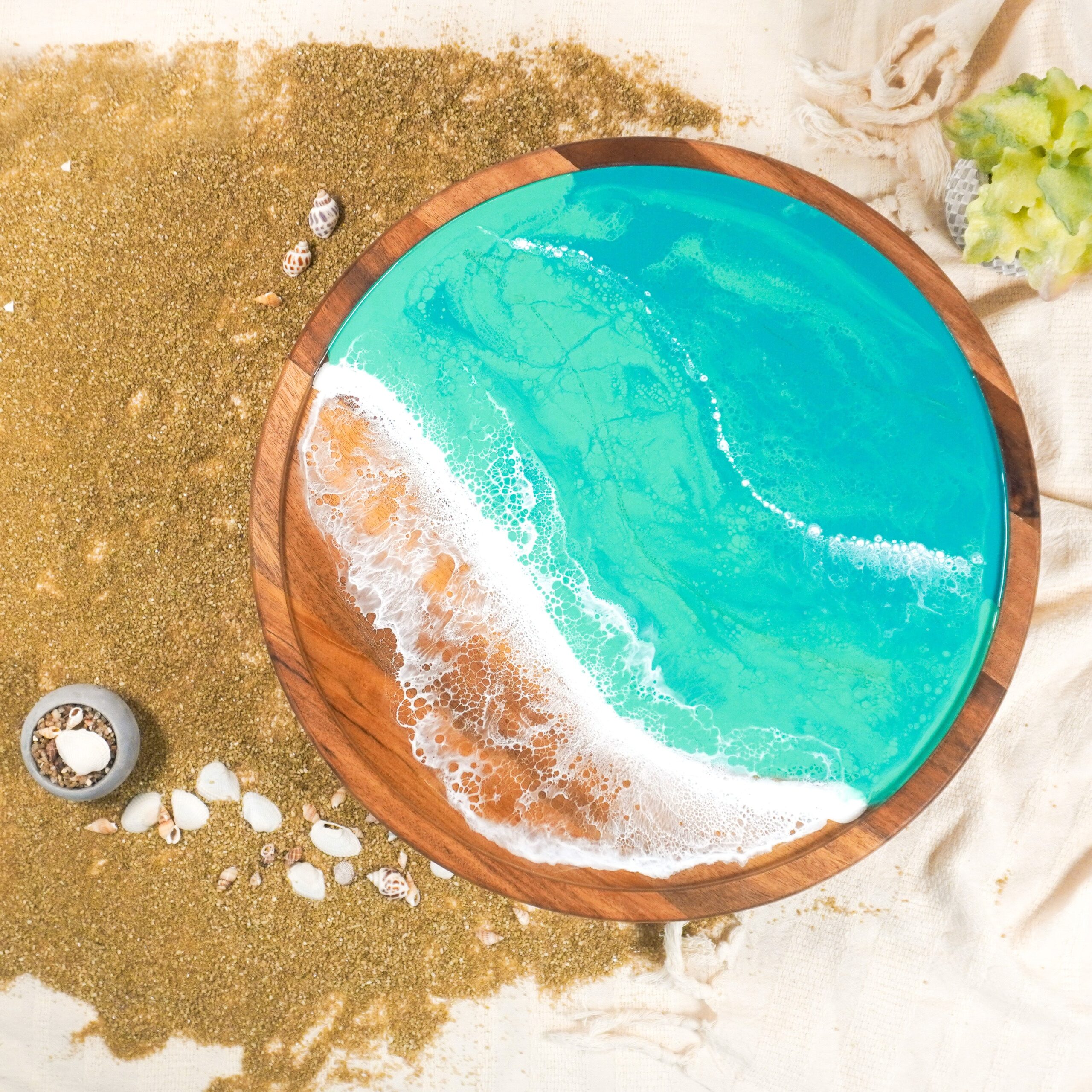 These pieces blend gorgeous Acacia hardwood and an eco-friendly resin to create a one-of-a-kind Lazy Susan that you will be proud to serve from. These lazy Susans are perfect for serving a group of 6-8 people.