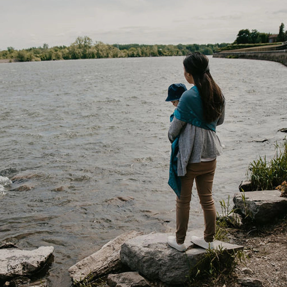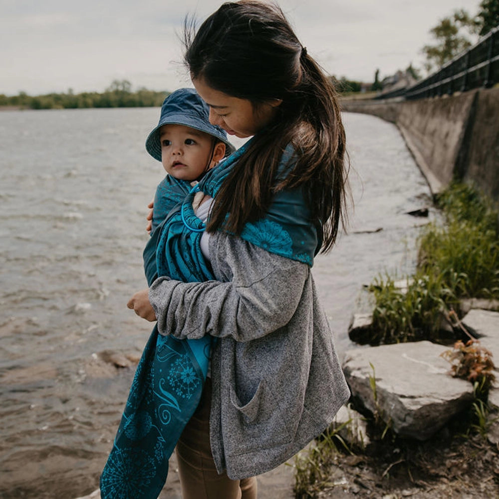 Premium Adjustable Cotton Baby Ring Sling – Gentle, Ergonomic & Stylish | Dandelion Aqua | Made in Canada