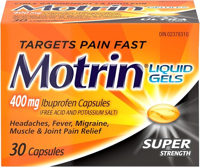 Motrin Ibuprofen Super Strength Liquid Gels, Pain Reliever, Menstrual Pain, Back Pain, 400mg, 30 Liquid Gels