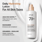 Experience deep hydration and a radiant complexion with the Anua Rice 70 Intensive Moisturizing Milk. This lightweight, fast-absorbing lotion is formulated with 70% rice water, niacinamide, ceramides, and squalane to nourish and moisturize your skin effectively. Its gentle formula is suitable for all skin types, including sensitive skin, providing a smooth and luminous finish.