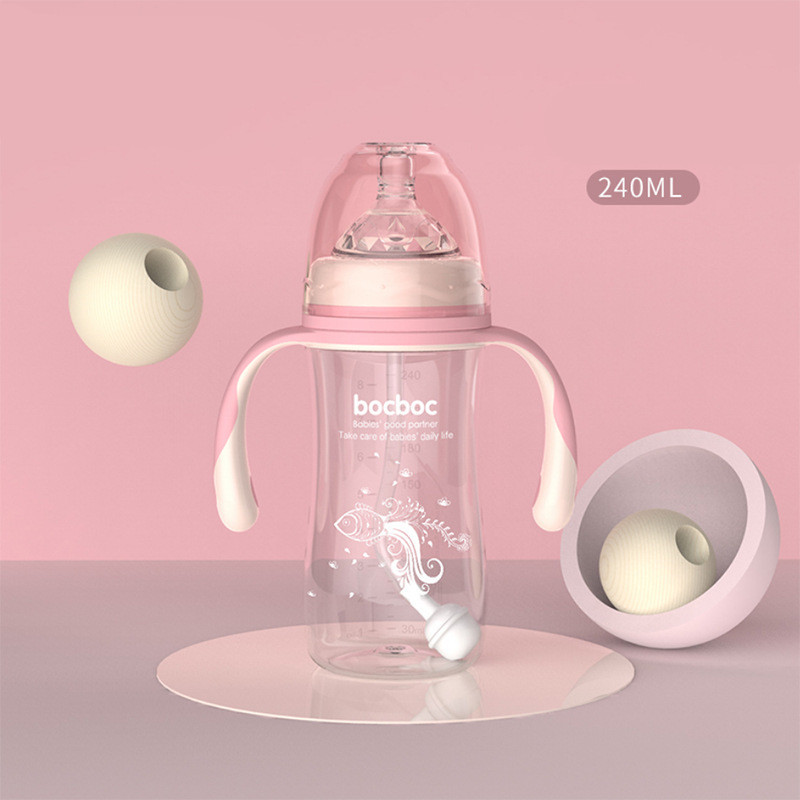 Baby Wide Caliber PP Straw Feeding Bottle Baby Plastic Water And Milk Bottle With Handle