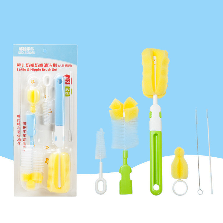 6-piece Sponge Bottle Brush Set Feeding Bottle Cleaning Set