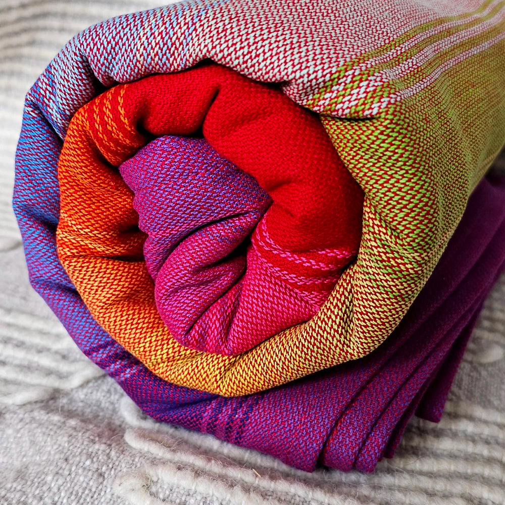 The Fiesta design lives up to its name—it’s bold, bright, and full of life. This carrier turns heads with its striking color palette and woven texture, making it as much a fashion statement as a parenting essential. Whether paired with everyday jeans and tees or more polished outfits, the Fiesta wrap adds a vibrant flair to your look while reflecting the dynamic energy of parenthood.
