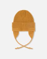 Because it’s always important to keep baby’s head warm, this knit cap is a must-have for chilly days that require a bit of bundling up. Ultra-soft in acrylic knit with a ribbed texture, this mid-season hat features protective ear flaps, string ties, and a logo label on the cuff.