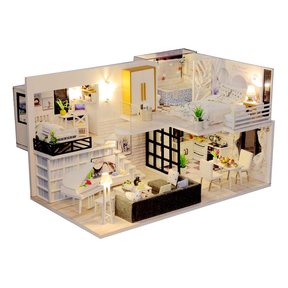 Mini Wooden House Assemble 3D Miniaturas Puzzle Toys For Children Girl Gift