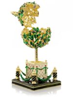 Rooted in the spirit of opulence and ingenuity that defined a golden age of decorative arts, this handmade Bay Tree Egg with Colorful Crystals is an unforgettable collectible that channels the creativity and elegance of Fabergé-inspired treasures. This luxury trinket box showcases detailed craftsmanship, blending Russian imperial and European art influences to create a timeless statement décor piece.