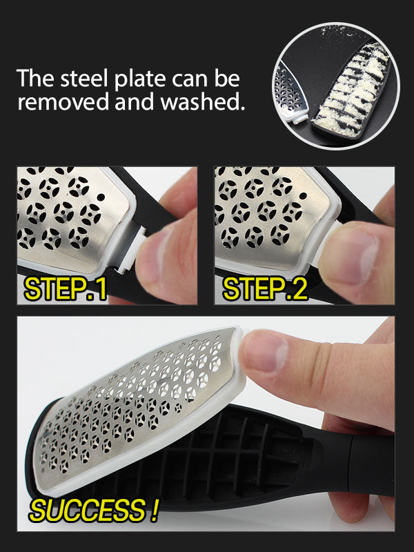 - Clean and Store: Detach the stainless panel and clean it under running water. Dry and store the foot file in a dry place for future use.