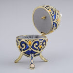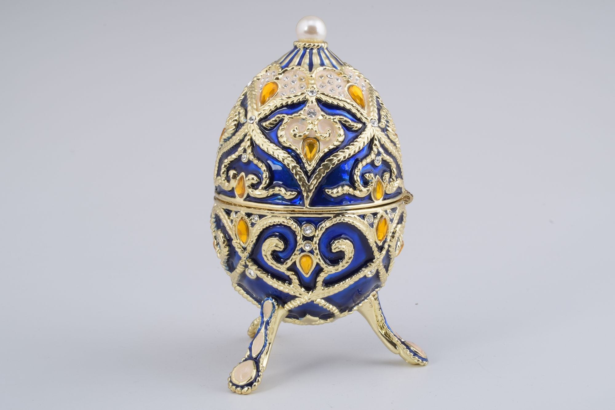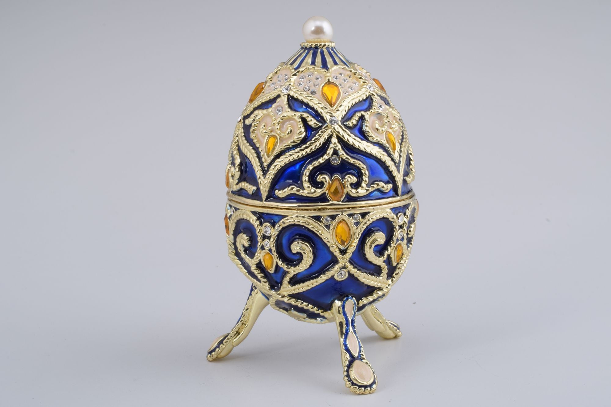 A splendid Blue Faberge Egg Music Playing Trinket Box.