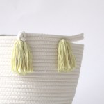 The buttercream tassel basket is one of our latest favoruites. Not only is it the perfect shade of buttercream yellow, but it is also the perfect addition to any room in your home. With endless possibilities, this basket can be used in so many ways. Store rolled up blankets, diapers or – even your little one’s toys. Hide the clutter without sacrificing style. Each basket features 6 hand-dyed tassels in buttercream yellow.
