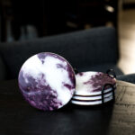 Dimensions: 4” Diameter each. All coasters in the tray stand at 4 3/4″ Tall.
