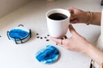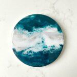 These super durable ceramic coasters are imprinted with your favorite resin designs and colors and covered with a crystal clear resin that make the colors pop right off your table. Each set has four matching printed designs. These designs are printed from our original resin artwork poured in our facility. The back of each coaster is covered with a thick non-slip cork backing which eliminates any possibility of scratches to your furniture.