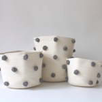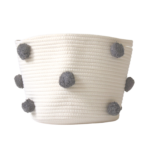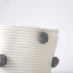 The charcoal grey basket is one of our best sellers for a good reason! Not only is it the perfect shade of charcoal grey, but it is also the perfect addition to any room in your home. With endless possibilities, this basket can be used in so many ways. Outfit a potted plant, store rolled up blankets, or – even your little one’s toys. Hide the clutter without sacrificing style. Each basket features 12 hand-dyed poms in charcoal grey.