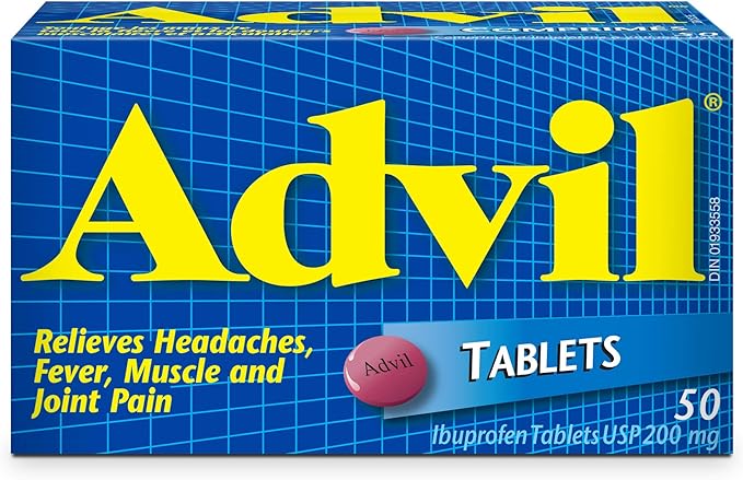 Advil Tablets (50 Count), 200 mg ibuprofen, Temporary Pain Reliever / Fever Reducer