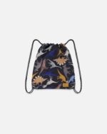In fabric made from recycled plastic bottles, this eco-friendly gym bag is perfect for carrying shoes, gym uniforms, or other essential items to and from school. With its simple drawstring closure, this backpack features slim straps for easy carrying, a logo patch for brand distinction, and an allover black dinosaur print.