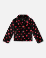 2par2 | Designed in Canada, Faux Fur Short Coat Black And Red With Hearts