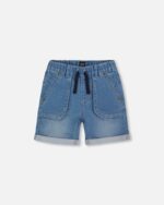 Our French Terry Denim Short Denim Blue is the bottom he can pair with any and every top he owns. This versatile short is made from stretch cotton/poly French terry and features a drawstring waistband, front utility pockets, and rolled cuffs. The fabric makes them a much comfier option than traditional denim jean shorts!