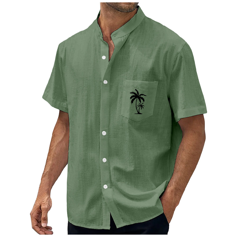 Geometric Stripe Element Coconut Tree Printed Shirt Men