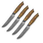 Ginza Steel AMELIA Five – 4-Piece VG10 Damascus Steel Steak Knife Set with Wood Block