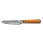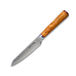 The Ginza Steel MIA 12 Utility Knife features a 5” 67-layer Damascus blade with a sharp AUS10 steel core. Its compact size is perfect for precision tasks, while the olive wood handle adds a refined, comfortable grip.