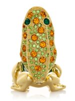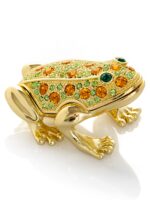 The frog trinket boxes embody the essence of art nouveau, a style that emerged in the late 19th century and celebrated organic forms, flowing lines, and a harmonious blend of nature and art. Keren Kopal’s creations capture this aesthetic with their intricate enamel work, delicately painted details and the incorporation of Austrian and Swarovski crystals that mimic the iridescent quality of a frog’s skin.