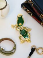 The frog trinket boxes embody the essence of art nouveau, a style that emerged in the late 19th century and celebrated organic forms, flowing lines, and a harmonious blend of nature and art. Keren Kopal’s creations capture this aesthetic with their intricate enamel work, delicately painted details and the incorporation of Austrian and Swarovski crystals that mimic the iridescent quality of a frog’s skin.
