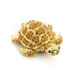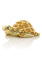 A delightful handmade Colorful Golden Turtle Trinket Box.