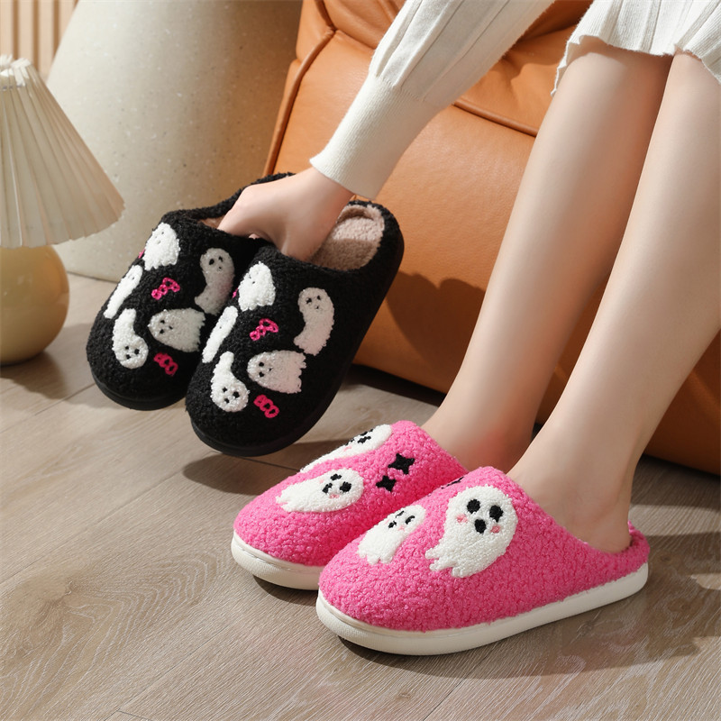 Halloween Cartoon Ghost Cotton Slippers For Women Indoor Non-slip Bedroom Floor Slipper Winter House Shoes