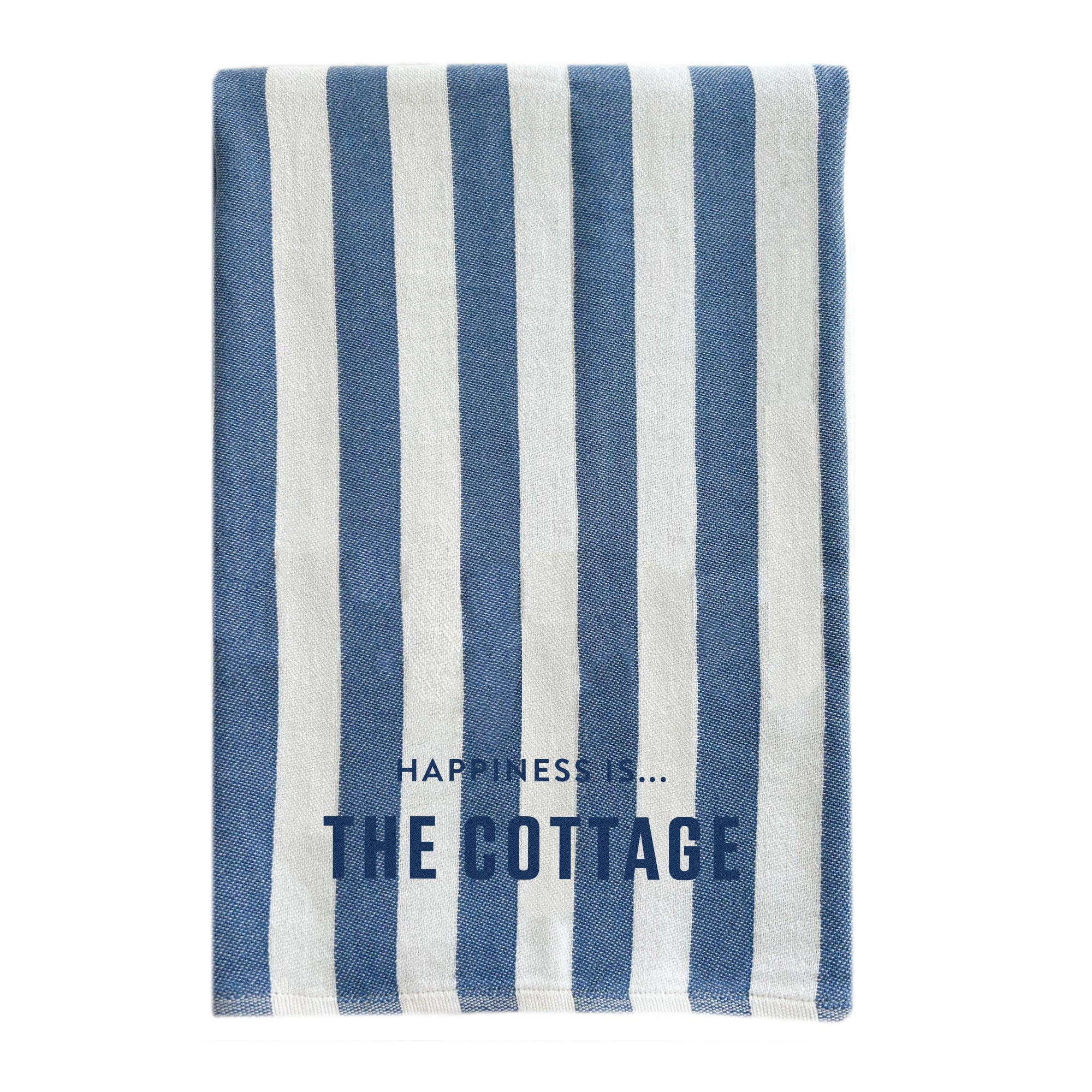 Tea/Hand Towel Cottage, Striped Blue | Happiness Is Inc, Made In Canada
