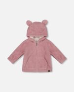 2par2 | Designed in Canada, Hooded Full Zip Cat Plush Jacket Dusty Pink