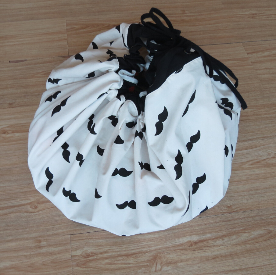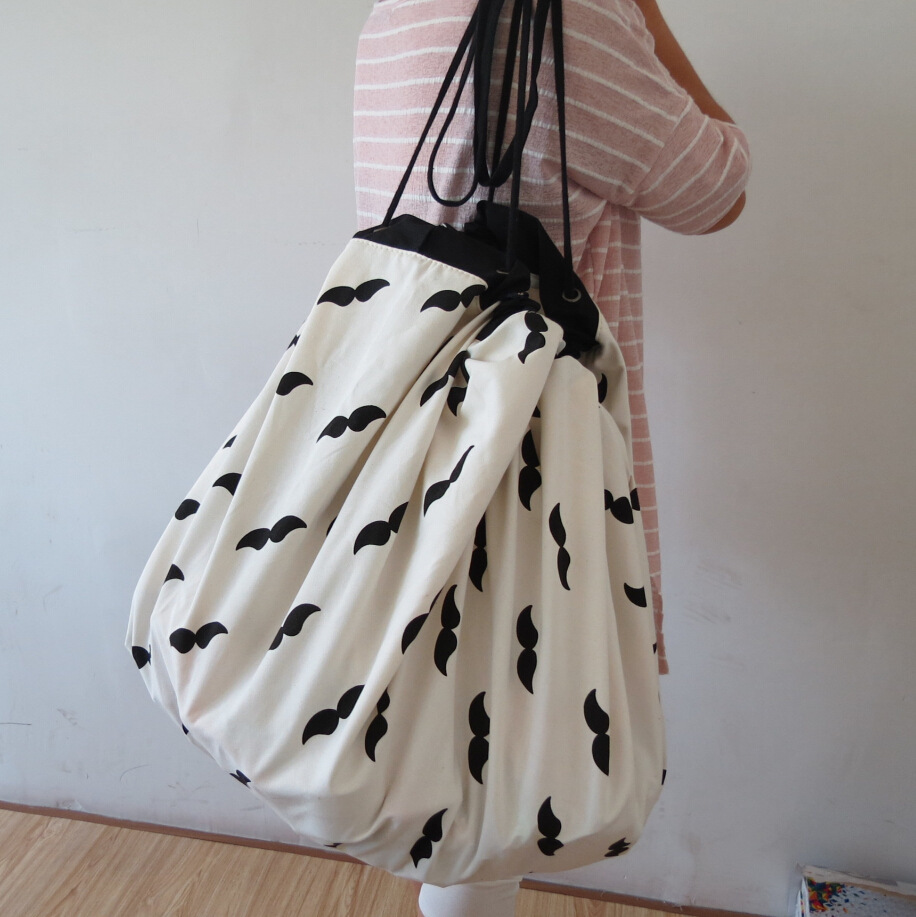 Ins popular mustache and bear face large toy storage bag hemp bag can be used as carpet storage hanging bag crawling pad
