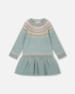 2par2 | Designed in Canada, Jacquard Sweater Dress With Ribbed Skirt Jade Green