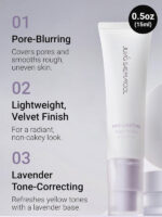 - Lavender Tone Correction: Neutralizes yellow undertones to brighten and even out the complexion.
