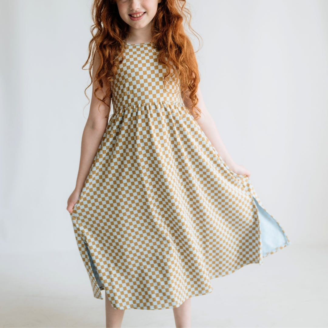 This midi-length dress features a square neckline, side slits for easy movement, and our signature bamboo blend that’s soft, breathable, and ready for anything. Designed to match with the grown-up version for the sweetest coordinated look—because twinning is always in style.