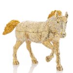 The intricate enamel work and crystal embellishments on these trinket boxes evoke the luxury and craftsmanship of the Fabergé eggs, which were masterpieces of the jeweler’s art and symbols of luxury and status. The combination of precious metals, gemstones, and enamel techniques creates a stunning visual effect, capturing the grace and power of these majestic animals.