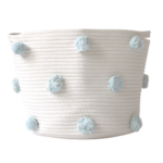 The Light Blue Pom basket is the perfect addition to any room in your home. With endless possibilities, this basket can be used in so many ways. Outfit a potted plant, store rolled up blankets or, even your little one’s toys. Hide the clutter without sacrificing style. Each basket features 12 hand-dyed poms in a beautiful shade of light blue-grey.