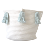 The Light Blue tassel basket is the perfect addition to any room in your home. With endless possibilities, this basket can be used in so many ways. Outfit a potted plant, store rolled up blankets or, even your little one’s toys. Hide the clutter without sacrificing style. Each basket features 10 hand-dyed tassels in a beautiful shade of light blue-grey.