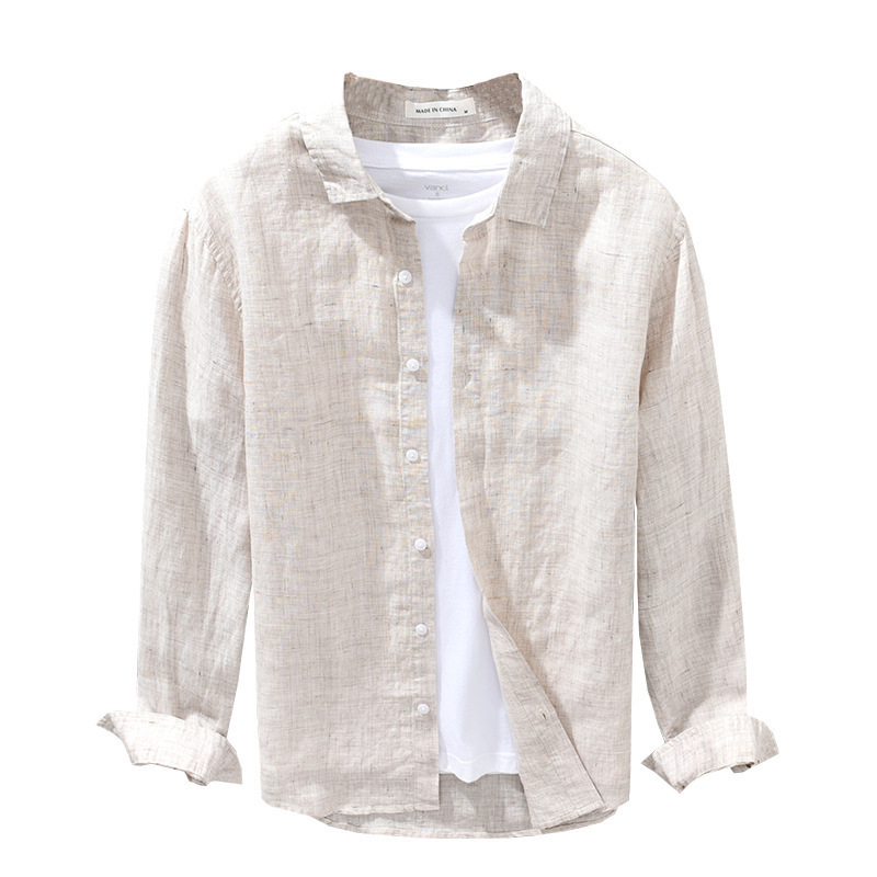 Linen Breathable Shirt Solid Color Loose Men