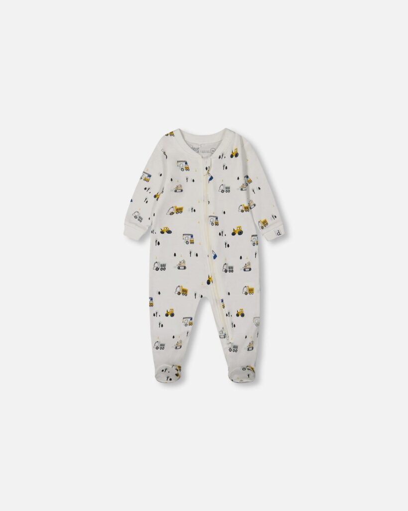 2par2 | Designed in Canada, Printed Organic Cotton One-Piece Pajama Off-White And Multi Truck