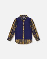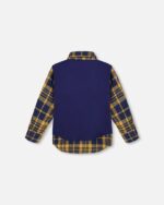 2par2 | Designed in Canada, Long Sleeve Plaid Flannel Shirt With Solid Vest Blue And Ocher