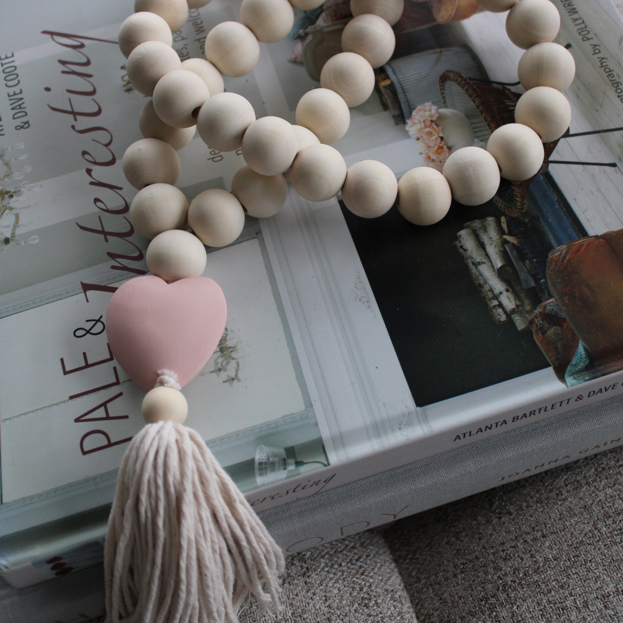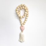 The perfect accessory for your home. These decorative beads look perfect hanging from a door handle, laying on a shelf,  or adorning your coffee table with. Handmade with beautiful pine wood beads, a hand carved heart and finished with a Tassel, this piece will send a daily reminder of love.