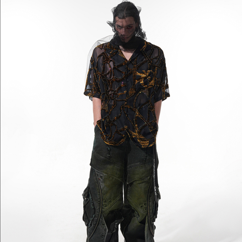 Lightweight Translucent Snake Pattern Short-sleeved Shirt For Men
