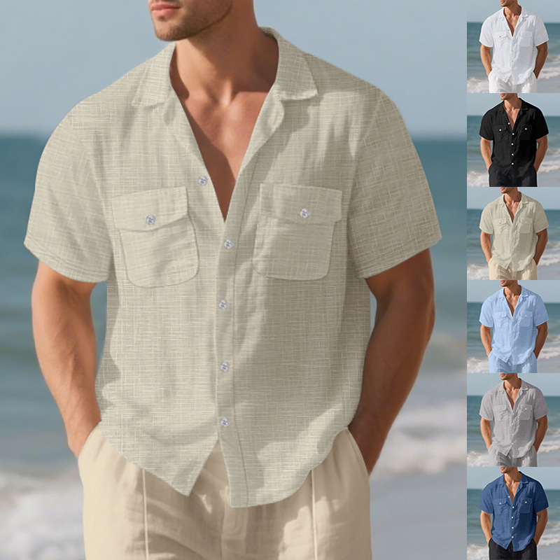Linen Long-sleeved Shirt For Men Cotton And Linen Pockets Non-iron Shirt