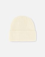 Our Mid-Season Knit Hat Off White is a must-have! Made for chilly days that aren’t super cold, this beanie hat features a classic silhouette with a ribbed stitch texture, a cuffed hem, and a small logo label. Team it with a matching jacket for a cool, coordinated look.