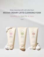 MISSHA Creamy Latte Cleansing Foam is a luxurious facial cleanser designed to cater to various skin concerns with its three unique variations: Chocolate, Green Tea, and Strawberry. This cleansing foam combines the nourishing properties of milk ingredients to cleanse, moisturize, and revitalize the skin.