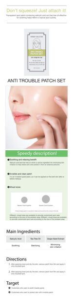 Discover a targeted solution for your skin concerns with the MISSHA Speedy Solution Anti Trouble Patch Set. This innovative skincare product is designed to offer a discreet and effective approach to managing blemishes. Each set includes patches that are infused with key ingredients to support skin clarity and health.
