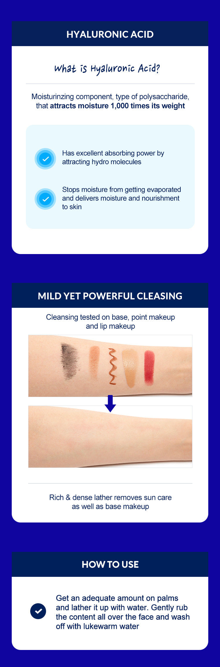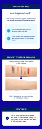 - Deep Hydration: The cleanser contains a complex of 10 kinds of hyaluronic acid, each designed to draw water up to 1000 times its weight, providing intense moisture to the skin.