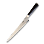 Look no further—your ideal bread knife has arrived! The Miyako SUS 240mm Damascus Bread Slicer is designed to bring precision and ease to every slice. With its 33-layer Damascus steel blade, this knife cuts effortlessly through crusty bread, soft pastries, and everything in between. The high-carbon molybdenum vanadium steel (AUS8) core ensures incredible sharpness, while the low-carbon SUS1A-1 layers enhance durability and corrosion resistance, ensuring long-lasting performance.