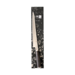 This single-edged blade is finely serrated to provide flawless cuts, while the laminated reinforced wood handle offers a secure and comfortable grip, even during extended use. Handcrafted by master artisans in Seki City, Japan, this bread slicer embodies the artistry and functionality of traditional Japanese knife-making. Elevate your kitchen experience with the ultimate combination of beauty, precision, and performance.