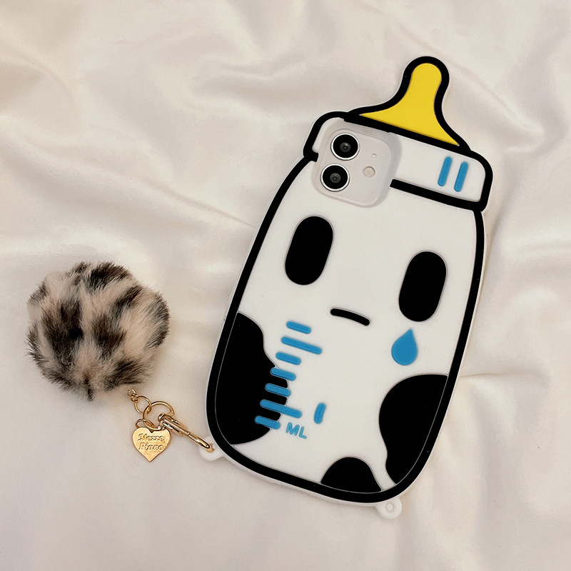 3D cute cartoon baby bottle baby bottle protective cover for iPhone 12Pro MAX 11Pro XS Max XR 7 8Plus spherical pendant lanyard rope cow cover
