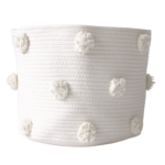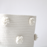 Our natural pom basket is the perfect addition to any room in your home. It’s subtle tone allows it to transfer from room-to-room, even as you redecorate throughout the years. With endless possibilities, this basket can be used in so many ways. Outfit a potted plant, store rolled up blankets, or – even your little one’s toys. Hide the clutter without sacrificing style. Each basket features 18 undyed, natural cotton pom poms.